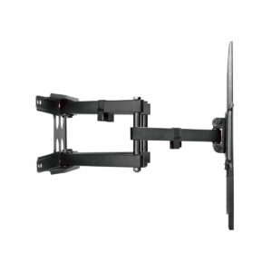 Le support mural KIMEX 013-3265 est conçu pour accueillir un écran de télévision LCD LED de 37 à 80 pouces répondant aux standards VESA (200×200 min, 600×400 max). Doté d’un système d’orientation à double bras supportant jusqu’à 50 kg, il vous permet d’incliner (+5/-15°), d’orienter (120°) et d’ajuster votre écran (+/-3°) selon votre besoin, et de l’écarter du mur de seulement 6,2 cm (support replié) à 46,8 cm (support déplié), afin de vous donner une grande amplitude de mouvement. Moderne et fonctionnel, le 013-3265 peut s’intégrer dans toutes les pièces de votre intérieur pour vous apporter le meilleur confort d’utilisation.