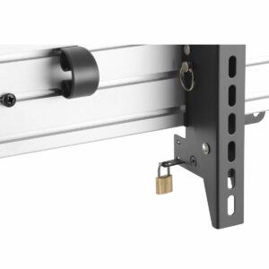 Cette disposition est idéale pour offrir une communication avancée dans les environnements de vente au détail, où la visibilité des informations est importante. Fonctionnel, le nouveau support permet de régler vos écrans en longueur pour une ligne parfaite et offre une inclinaison jusqu’à 20 degrés pour optimiser la capacité de visualisation selon chaque configuration. Sécurisé, ce support dispose d’un mécanisme antivol qui permet d’ajouter un cadenas pour protéger efficacement vos écrans en lieu public.
